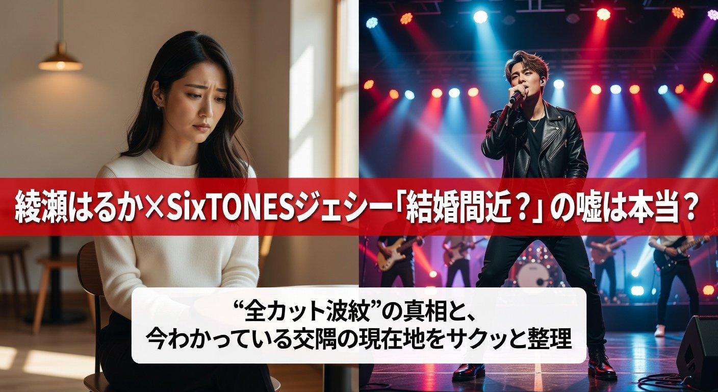 綾瀬はるか×SixTONESジェシー「結婚間近?」の噂は本当?“全カット波紋”の真相と、今わかっている交際の現在地をサクッと整理